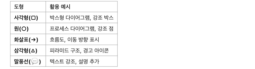 ★ Tip: 도형과 아이콘을 조합하면 더 직관적인 프레젠테이션을 만들 수 있다.