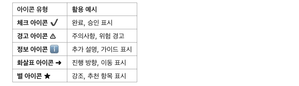 강조 & 포인트 표현 → 특정 부분을 강조할 때 아이콘을 활용하면 한눈에 핵심 정보를 전달 가능